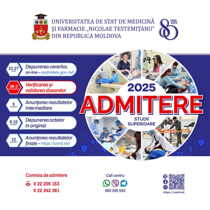 Astăzi, 28 iulie 2025, s-a încheiat depunerea dosarelor on-line pentru participarea candidaților autohtoni în concursul de admitere la Universitatea de Stat de Medicină și Farmacie „Nicolae Testemițanu” din Republica Moldova.